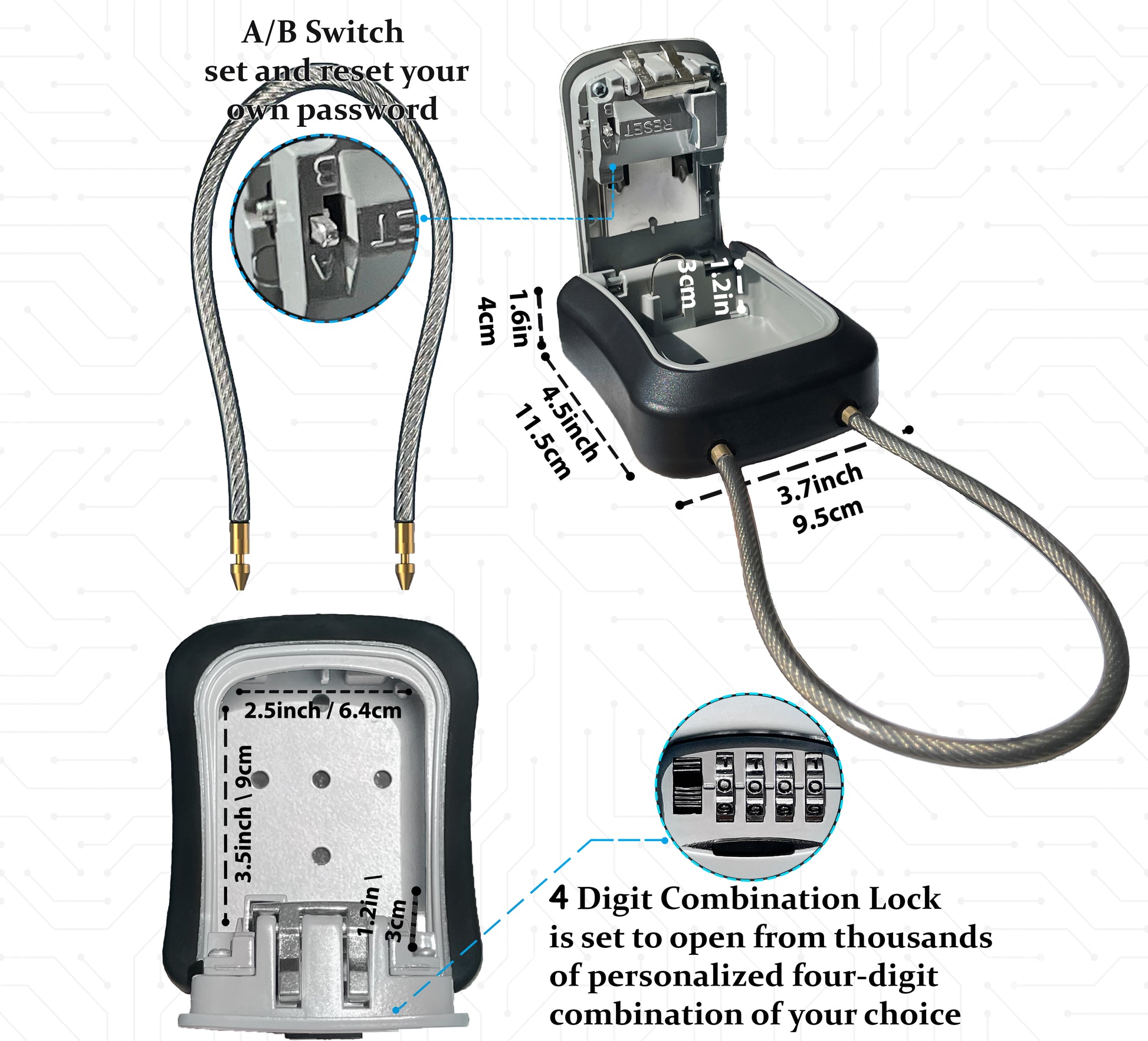 - Large internal cavity makes it easy to keep a lot of keys and access cards. Set your own 4-digit combination for keyless entry with maximum security.