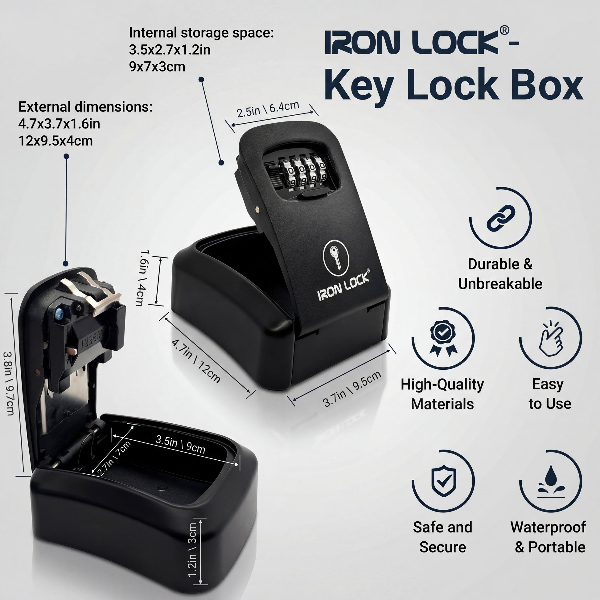 Experience the innovation of Iron Lock with its unique side profile and sturdy build. Designed for both security and aesthetics, its thoughtful features redefine what a lock box can offer.