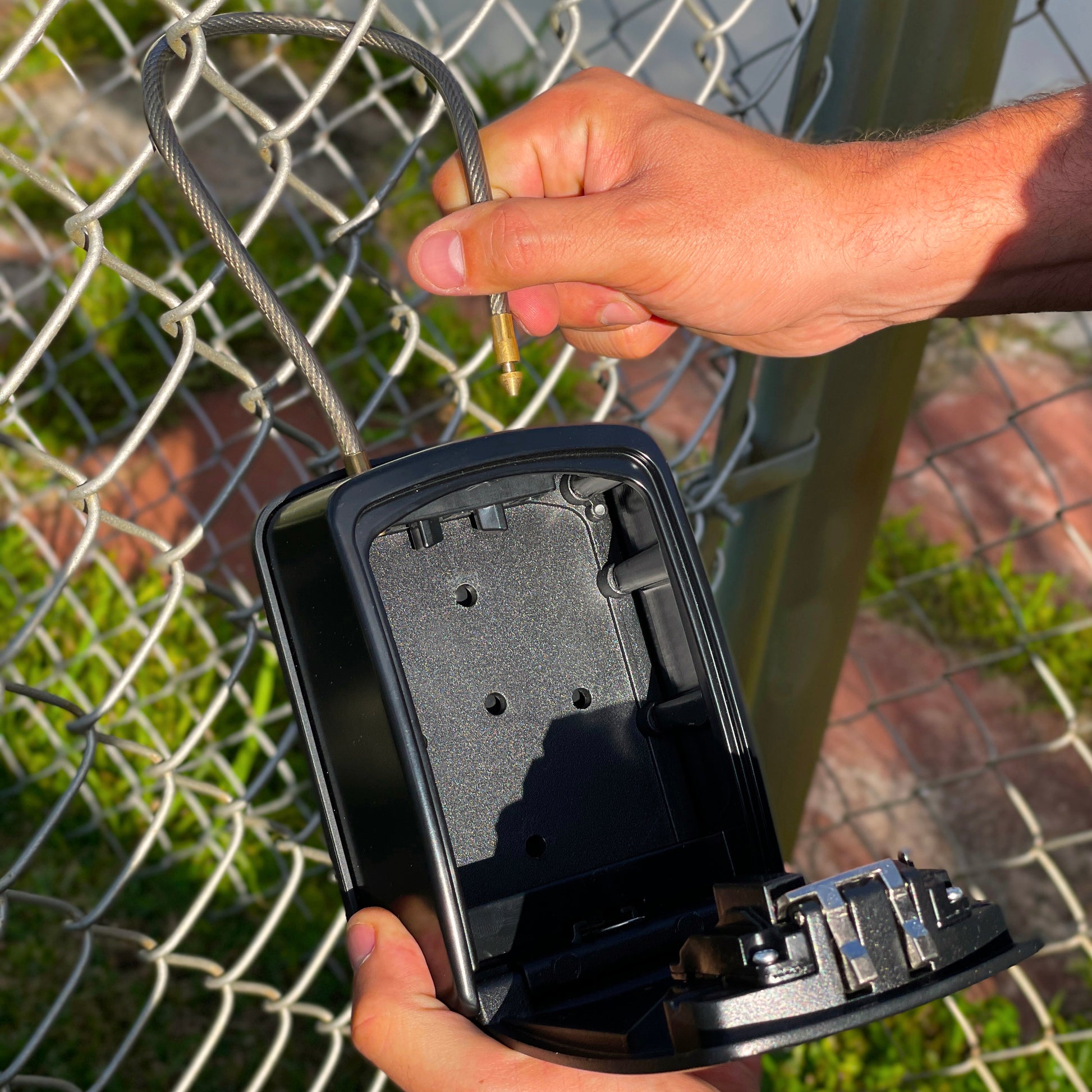 - Our lock box features a Removable Shackle that makes it easy to install on doorknobs, fences, lockers, gates, garages, and more. It can be used as a portable lock box or wall-mounted, depending on your needs.